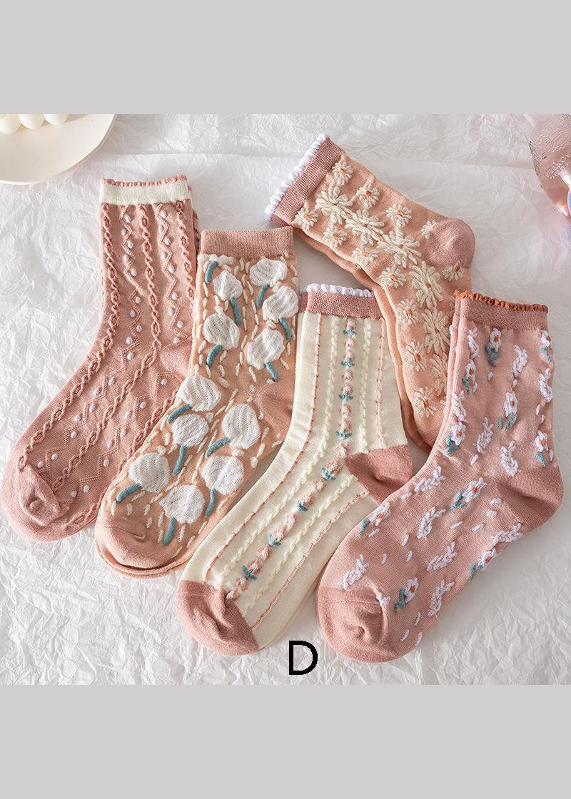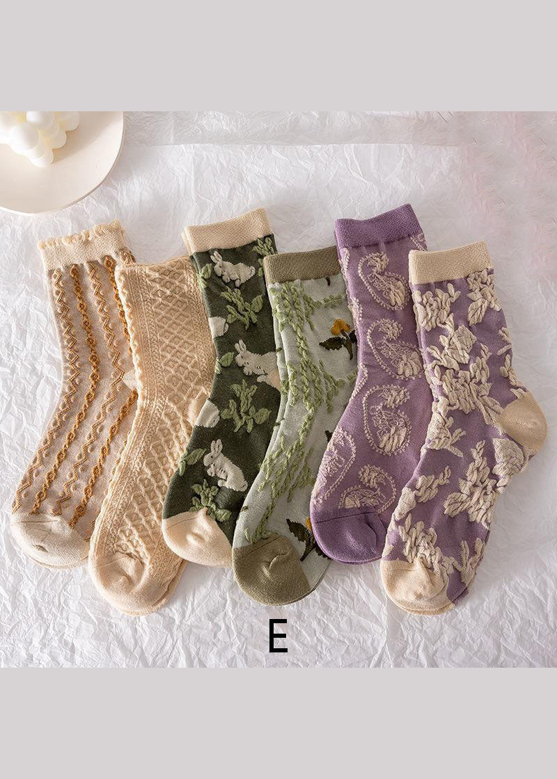 Wadenlange Socken aus Baumwolle mit Vintage-Blumenmuster und Jacquardmuster