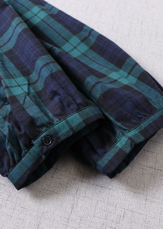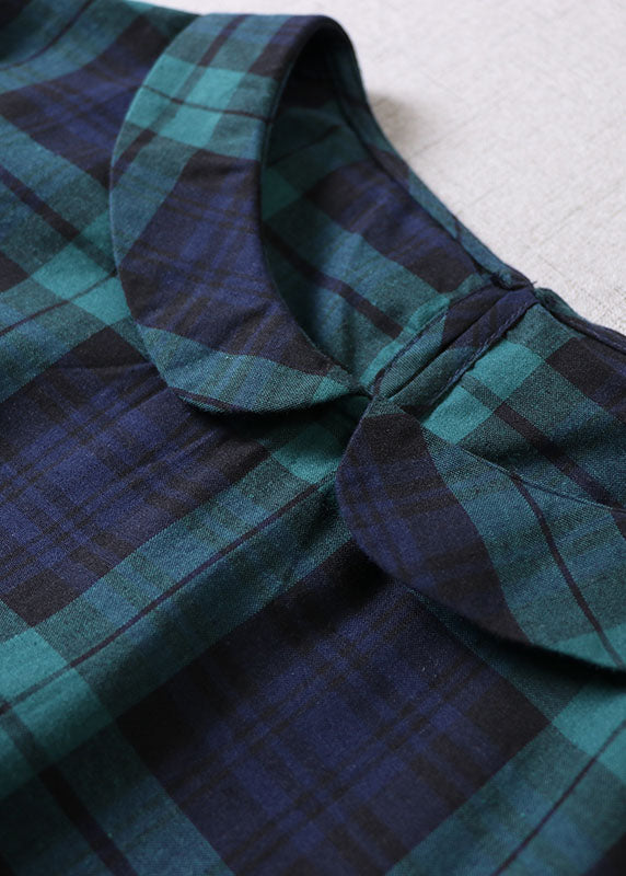 Vintage Grün Peter Pan Kragen Kariertes Baumwollkleid Frühling
