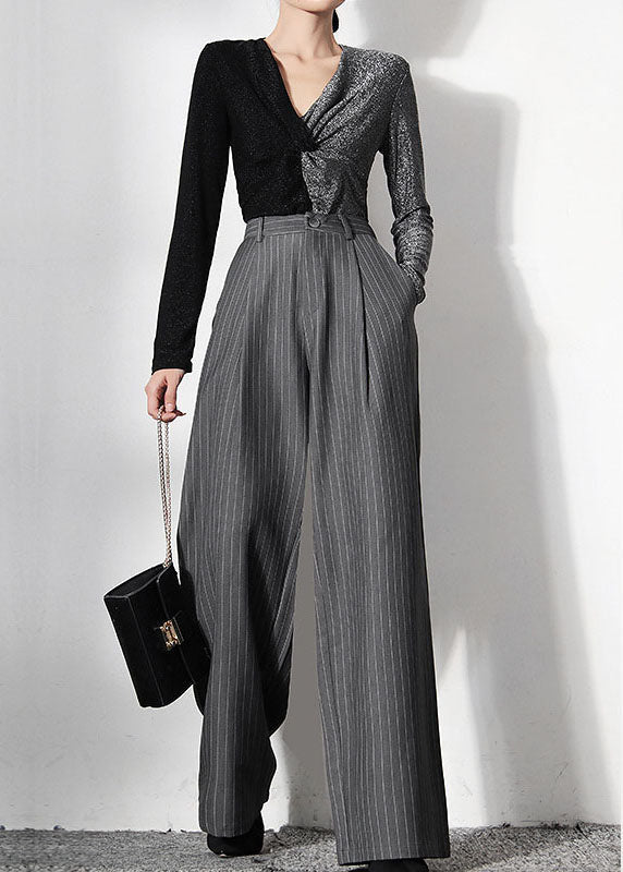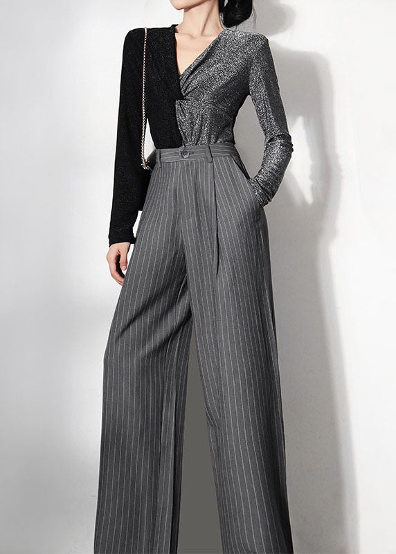 Vintage Grau Gestreifte Taschen weite Beinhose Frühling
