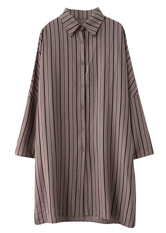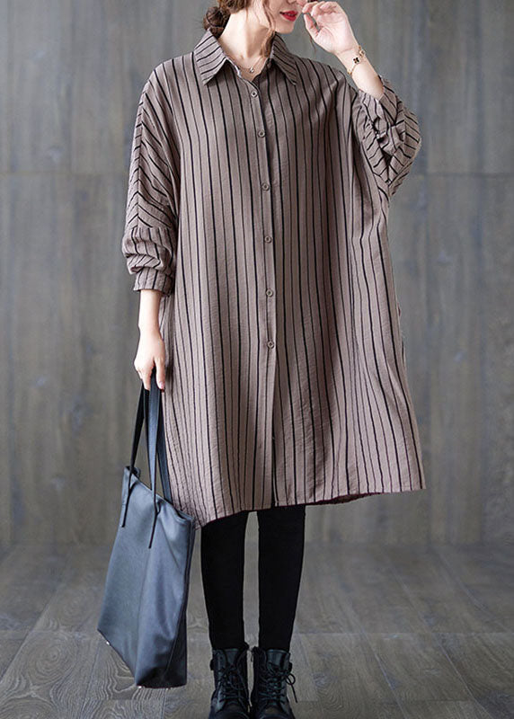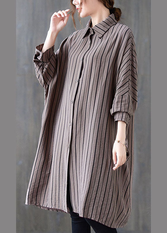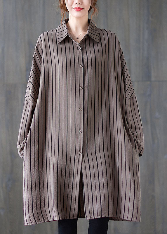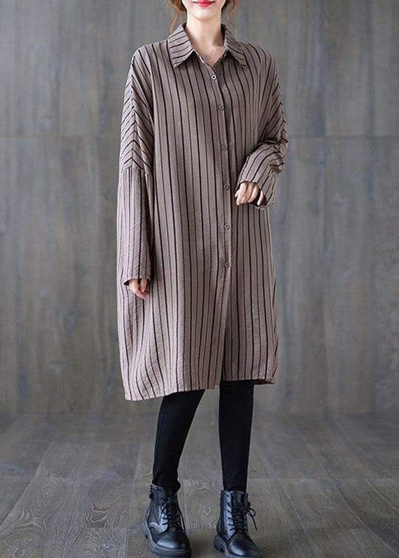 Vintage Khaki PeterPan Kragen Knopf Gestreift Herbst Langarm Top