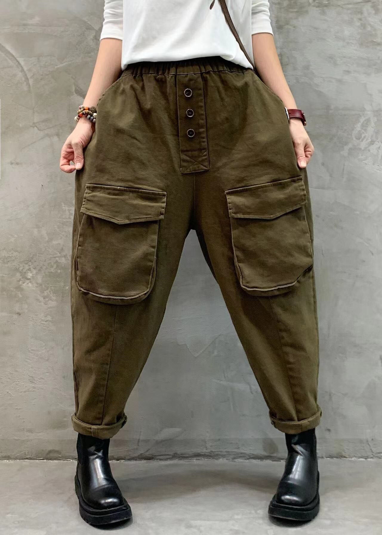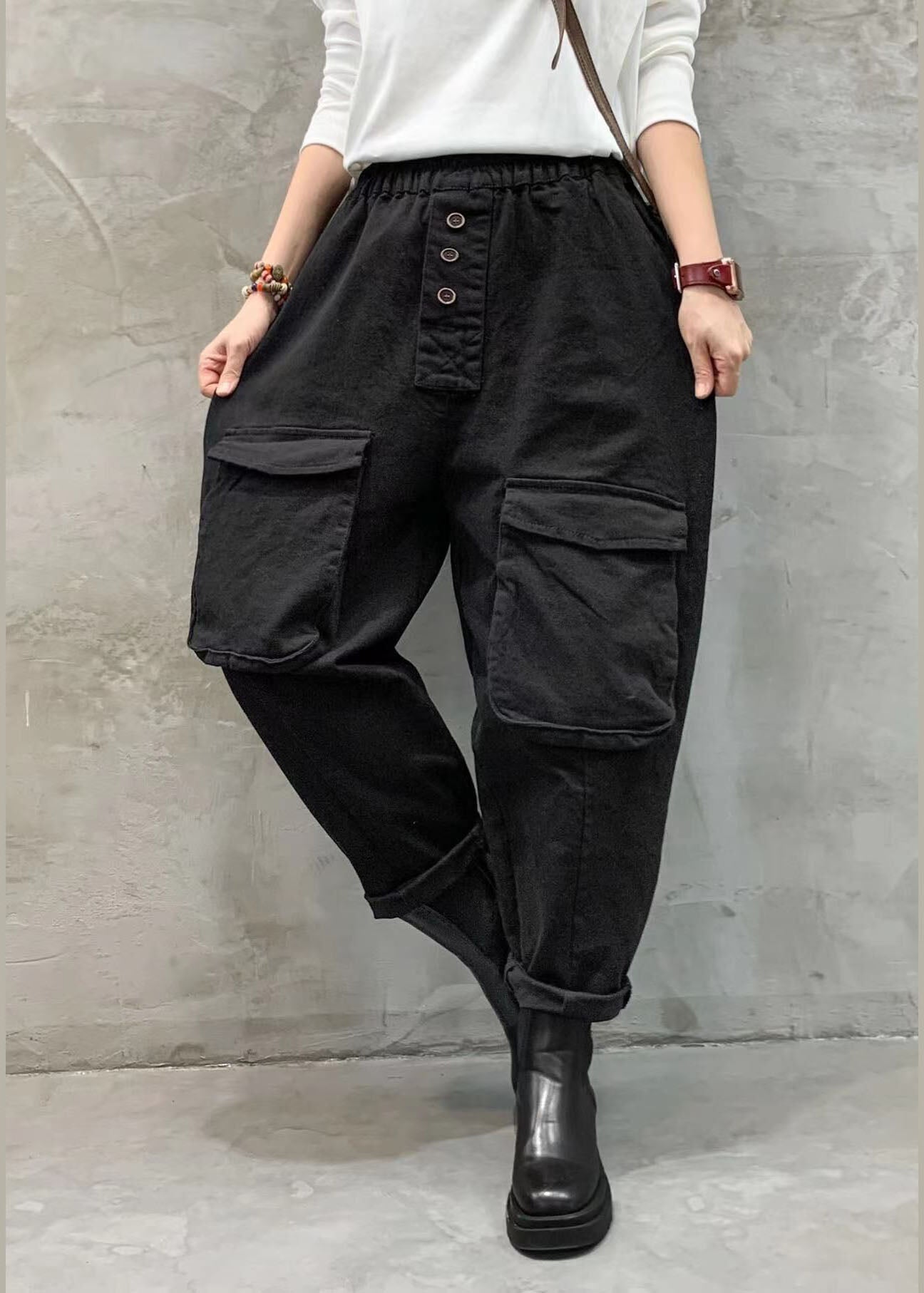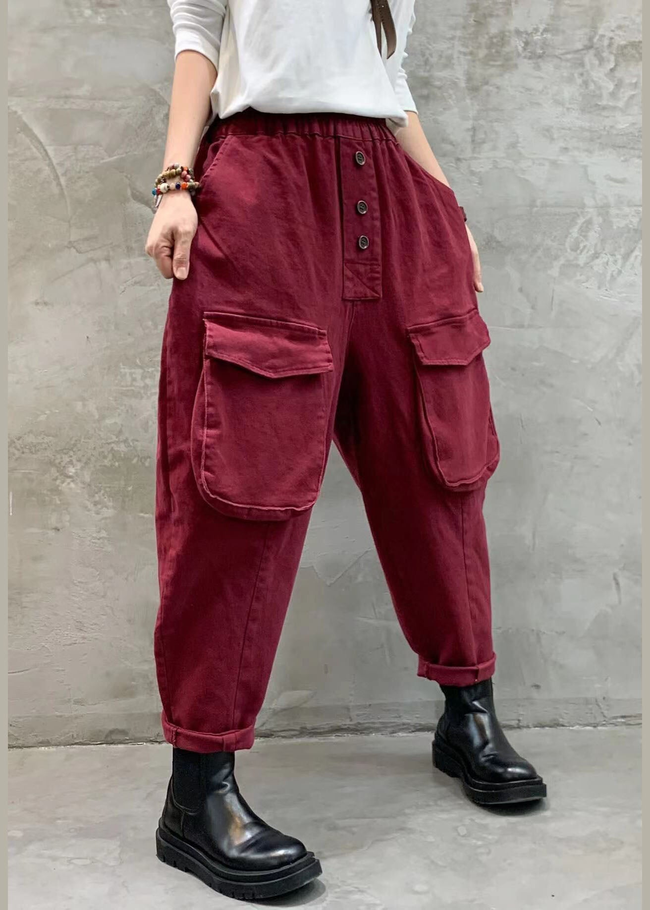 Vintage Rote elastische Taille Knopf Taschen Haremshose Frühling