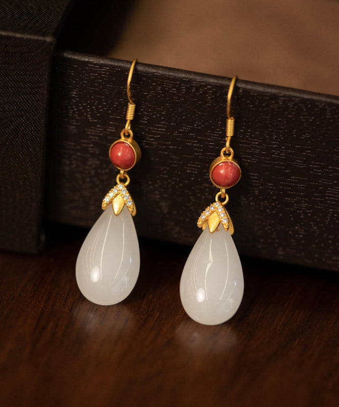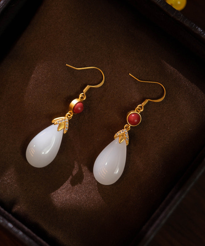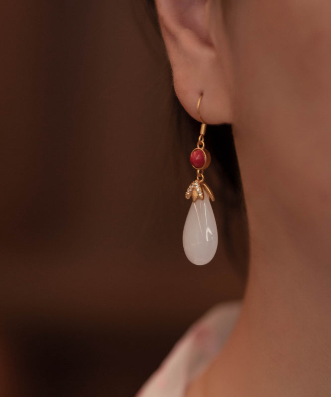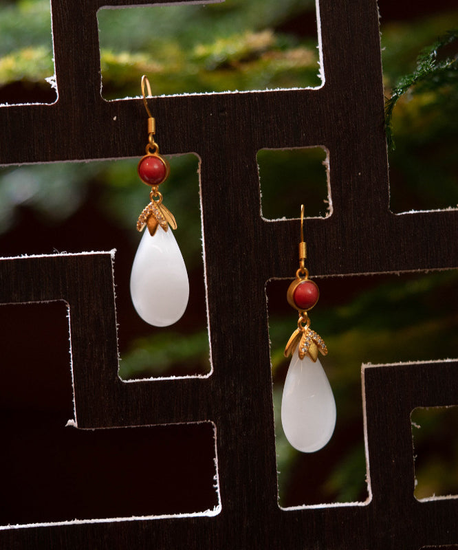 Vintage Weiß Farbe Achat Jade Wassertropfen Tropfen Ohrringe