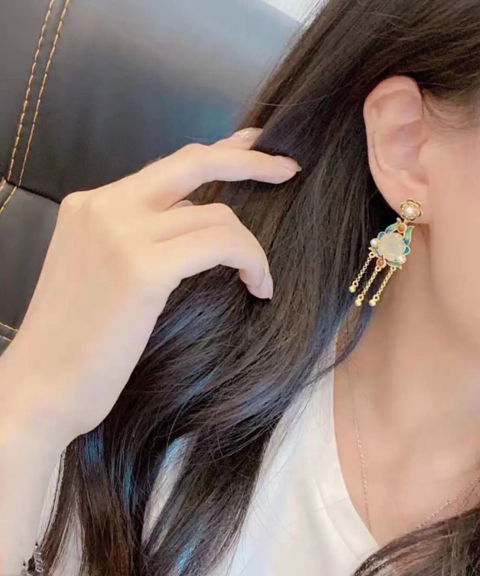 Made of fine Sterling Silver Overgild Inlaid Jade Agate Pearl.