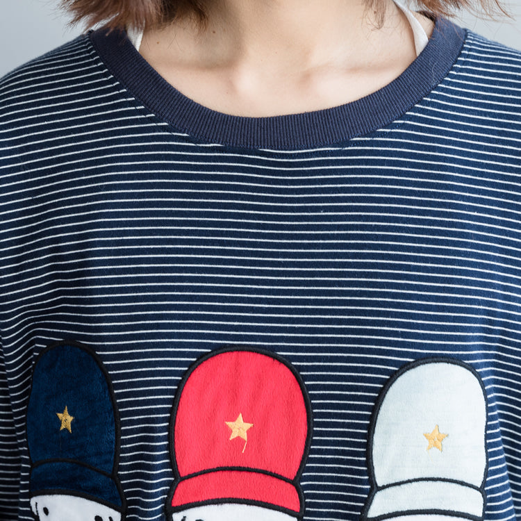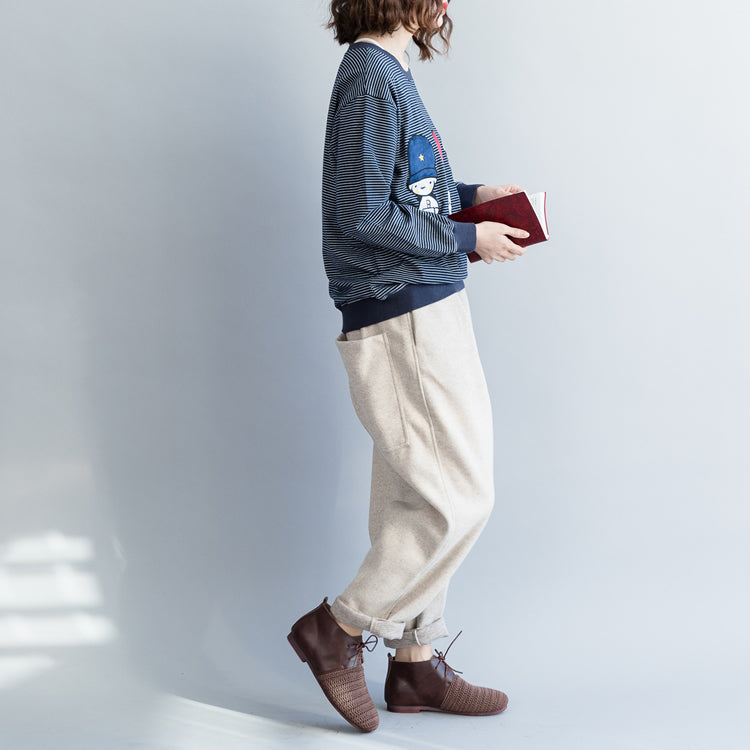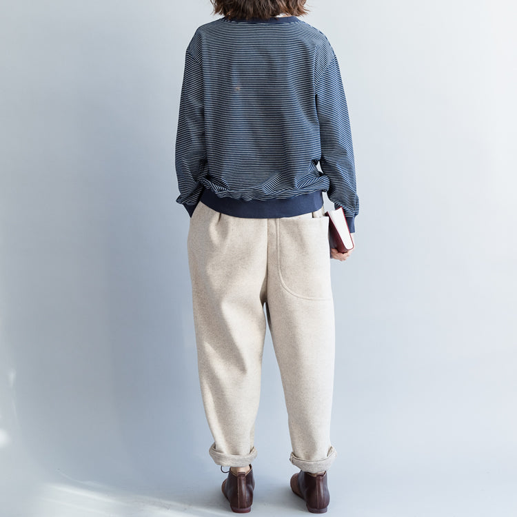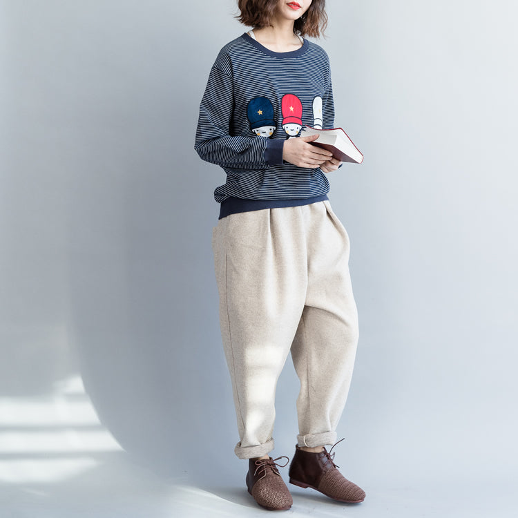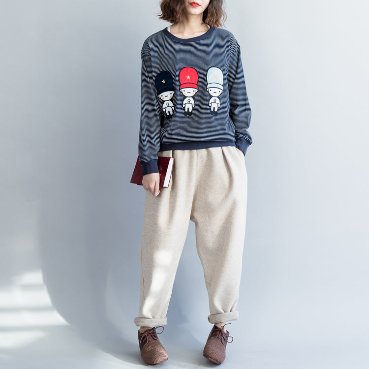 Leuchtend blau-weiß gestreifte Baumwollkleidung, indische Outfits, Art O-Ausschnitt-Tops