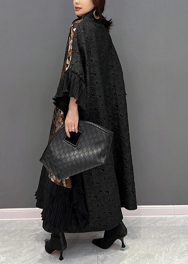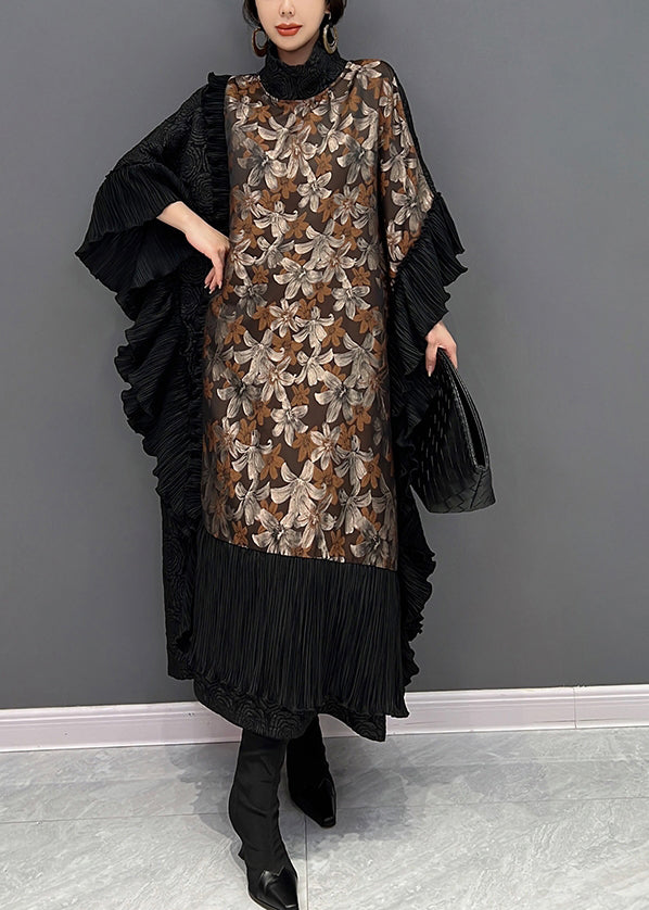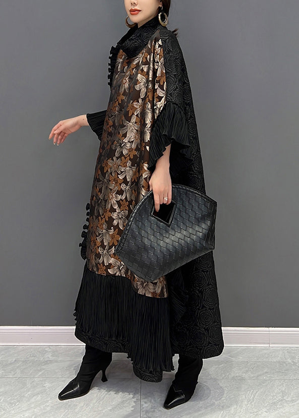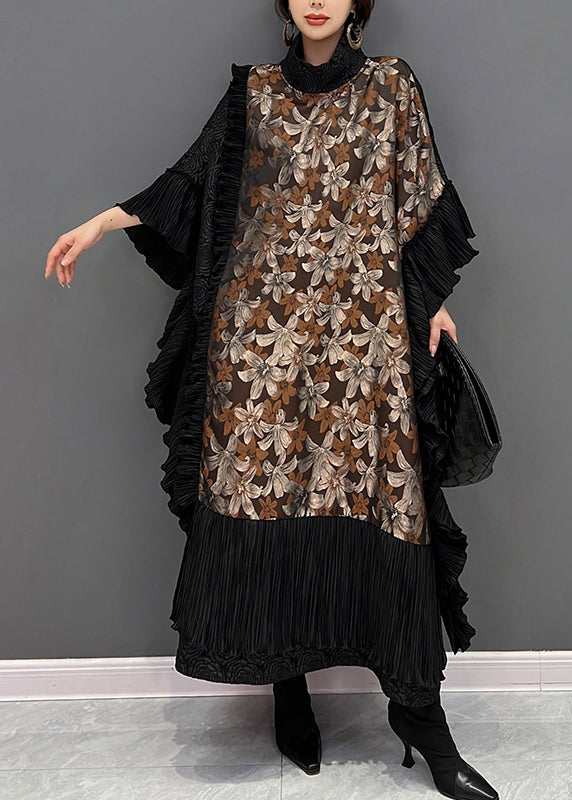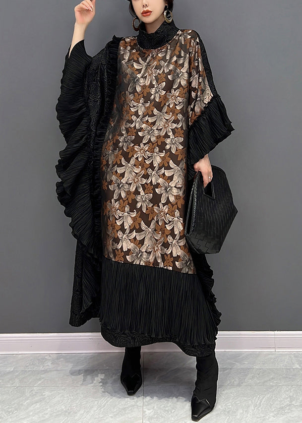 Vogue Schwarz O-Ausschnitt Rüschen Print Lange Kleider Fledermausärmel