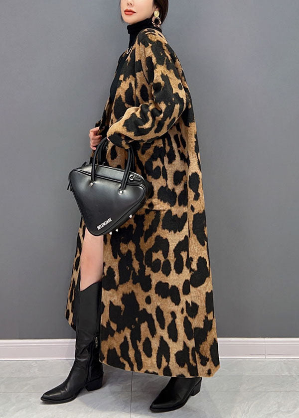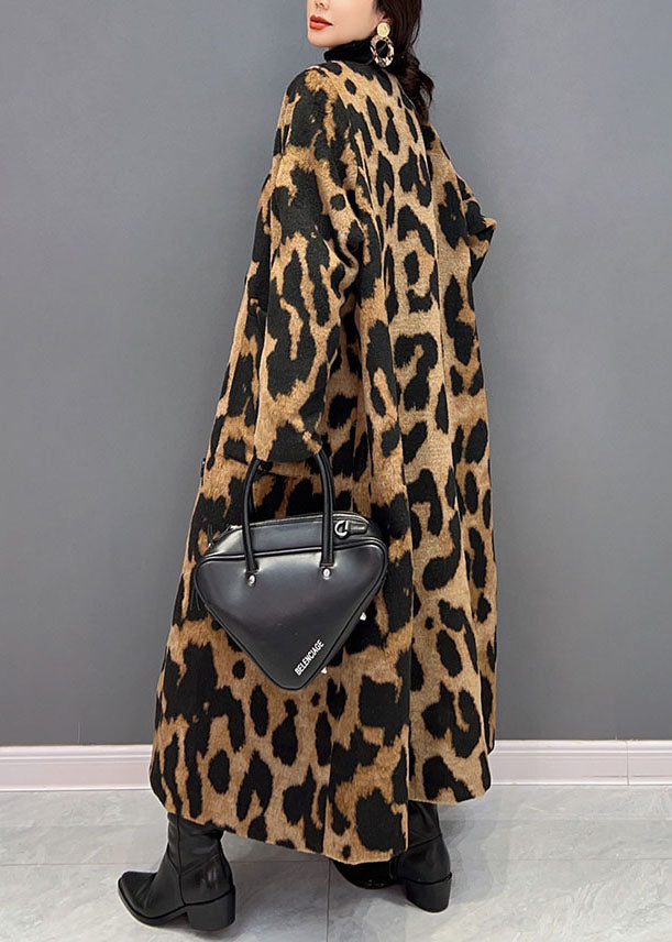 Vogue Kaffee V-Ausschnitt Übergroßer Leopardenmuster Ma Hai Mao Langer Mantel