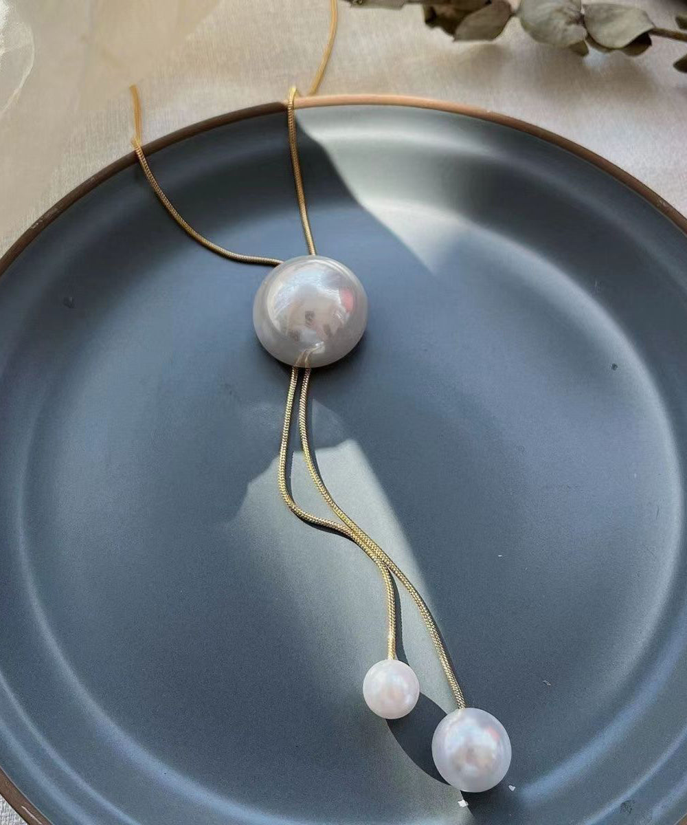 Vogue Gold Overgild Pearl Adjustable Tassel Pendant Necklace