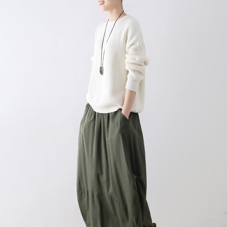 Weiße Baumwollpullover Damen Strickoberteile 2024 Winter kurze Pullover
