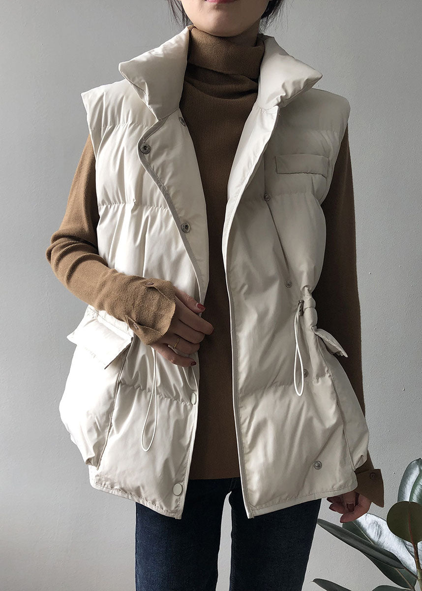 Weiße, modische, ärmellose Winter-Daunenweste mit Knopfleiste und Kordelzug