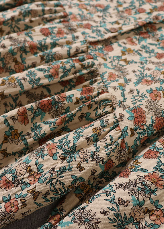 Beiges Baumwollkleid mit Rüschendruck für Damen, langärmlig
