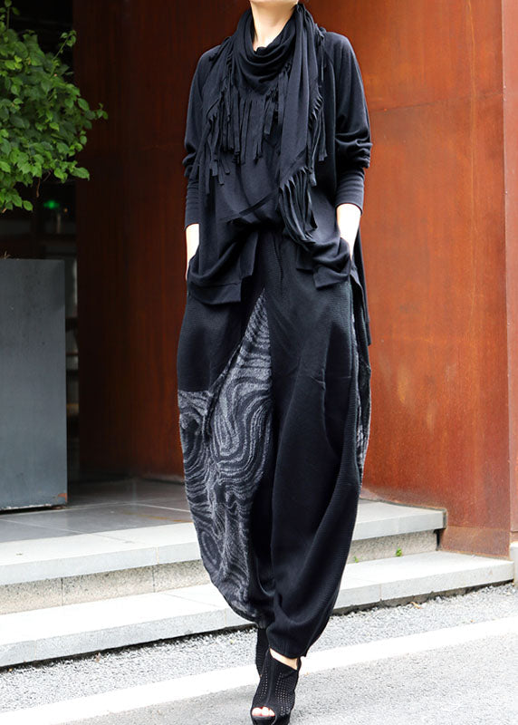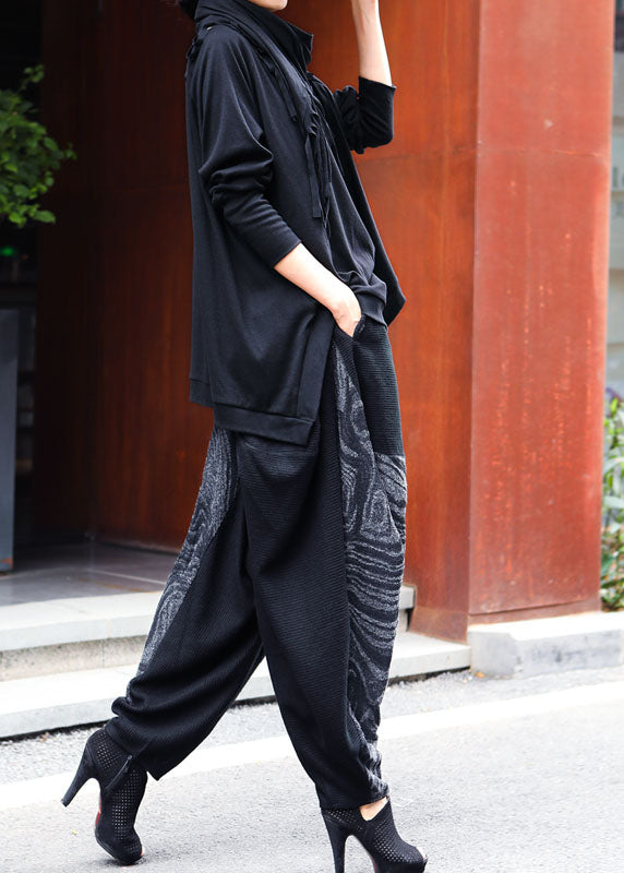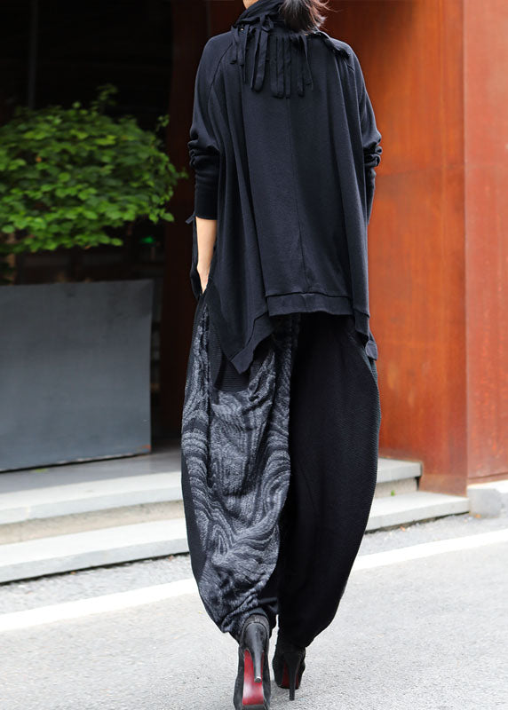 Frauen Schwarz asymmetrische design Patchwork mode Winter Zwei Stücke Set