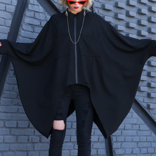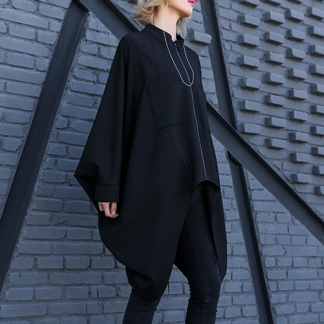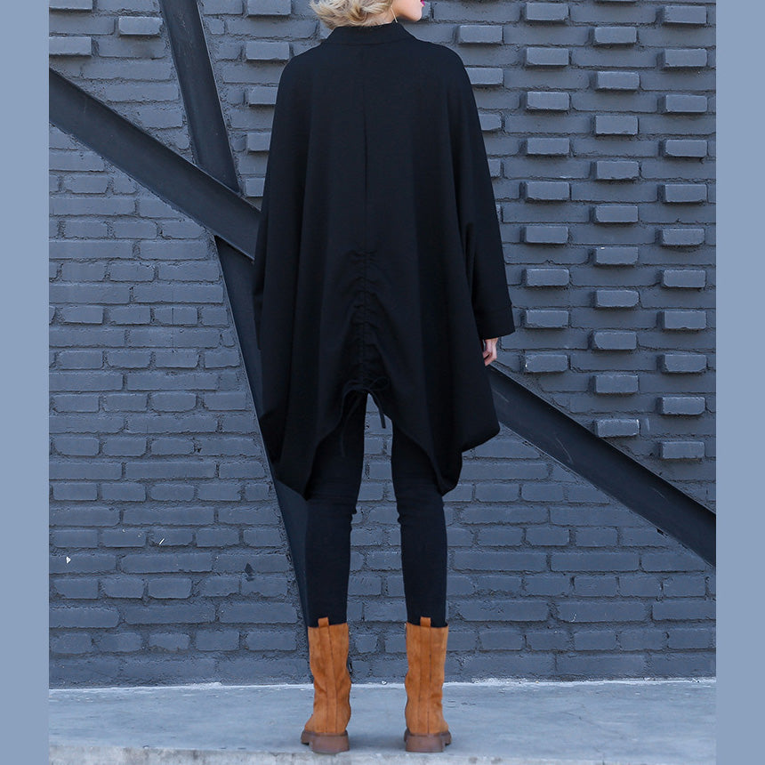 Schwarze Baumwollkleidung für Frauen in Übergröße mit Rundhalsausschnitt und extra großem Saum