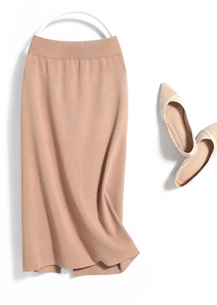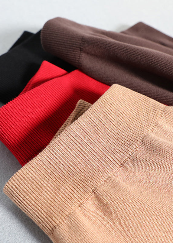 Frauen Schwarz Elastische Taille Strick Maxi Rock Herbst