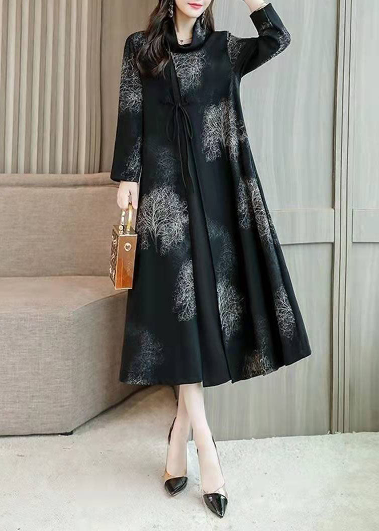 Damen schwarze Drucke Feiner Mantel für Frauen Fotografie Low High Design Kapuzenmantel