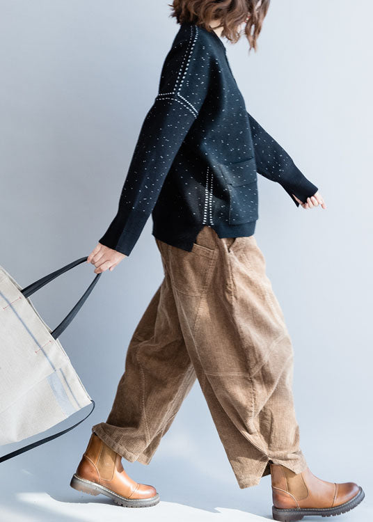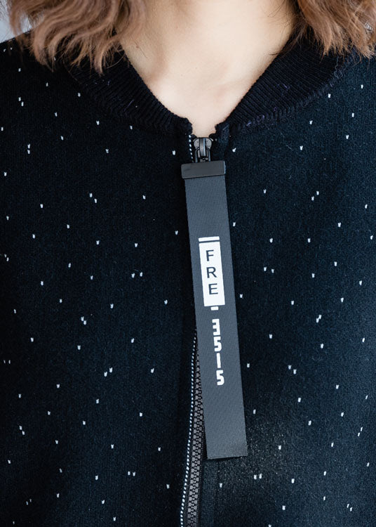 Frauen Schwarz Zip Up Dot Woll Strickmantel Winter