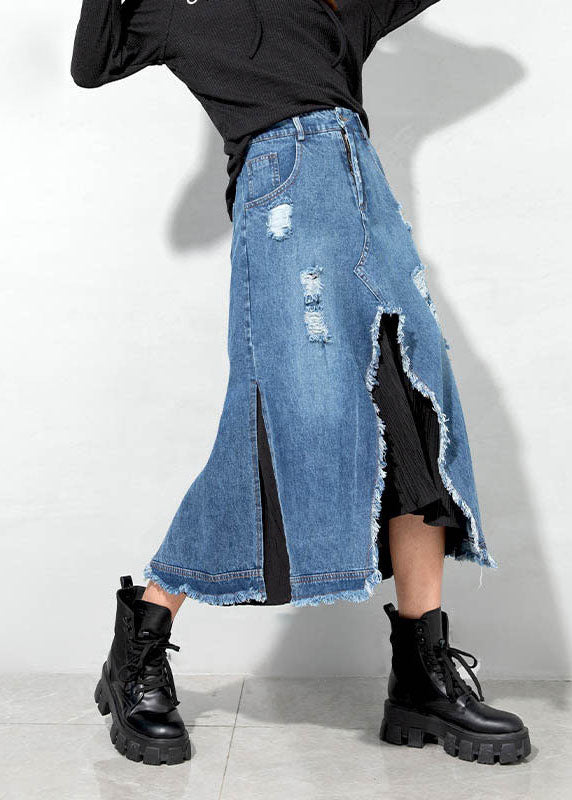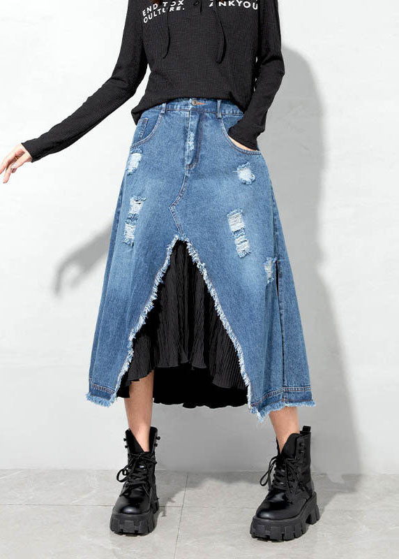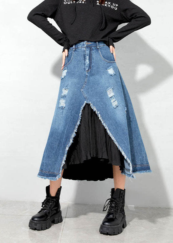 Frauen Blau Asymmetrische Patchwork Röcke Frühling