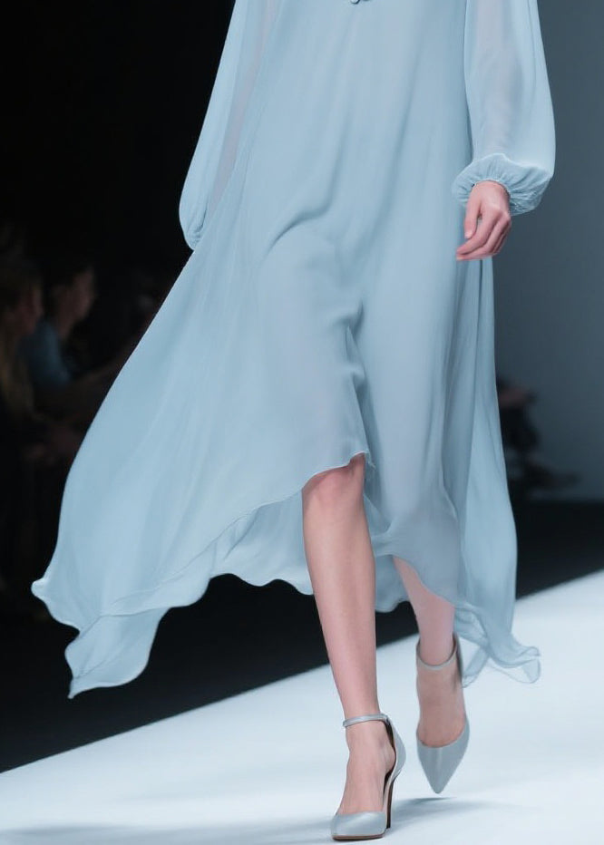 Women Blue V Neck Floral Solid Chiffon Long Dresses
