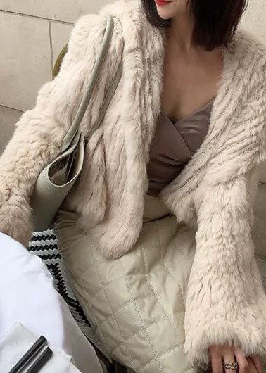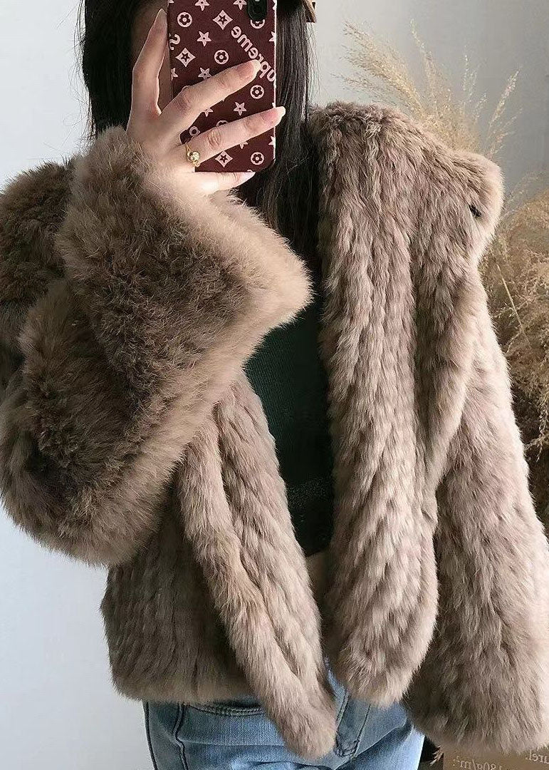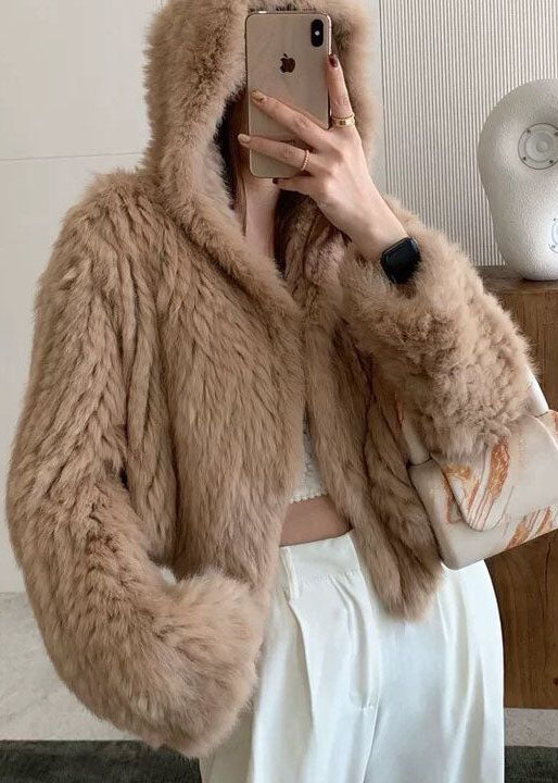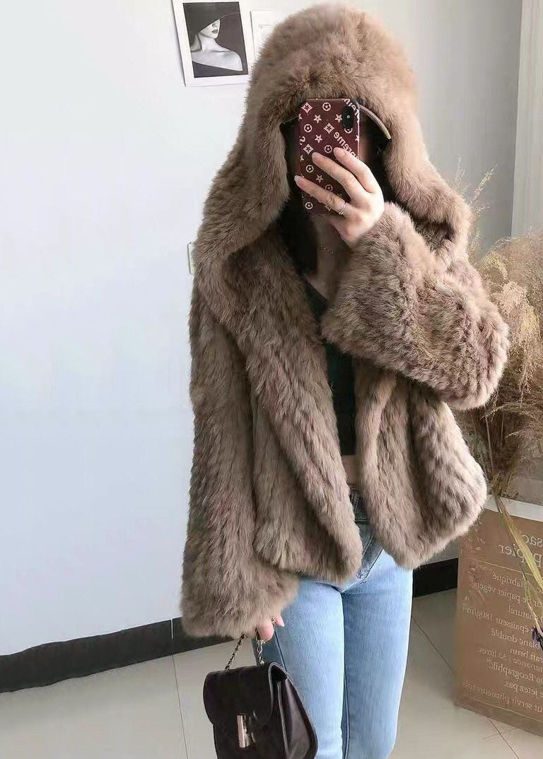 Frauen Kaffee Mit Kapuze Einfarbig Kaninchen Haar Stricken Jacke Winter