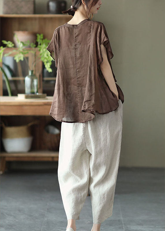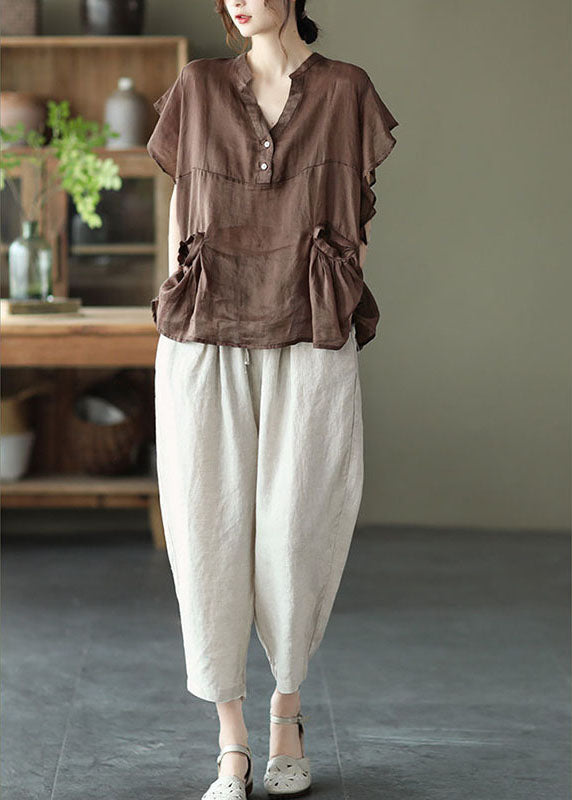 Frauen Schokolade retro Lose Taschen Herbst Shirt Tops Kurzarm