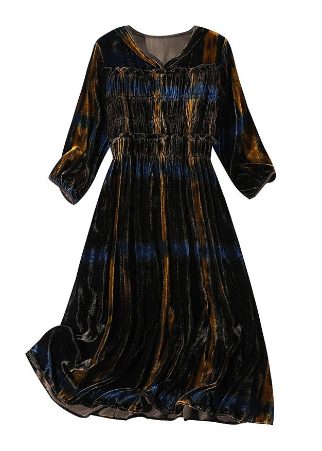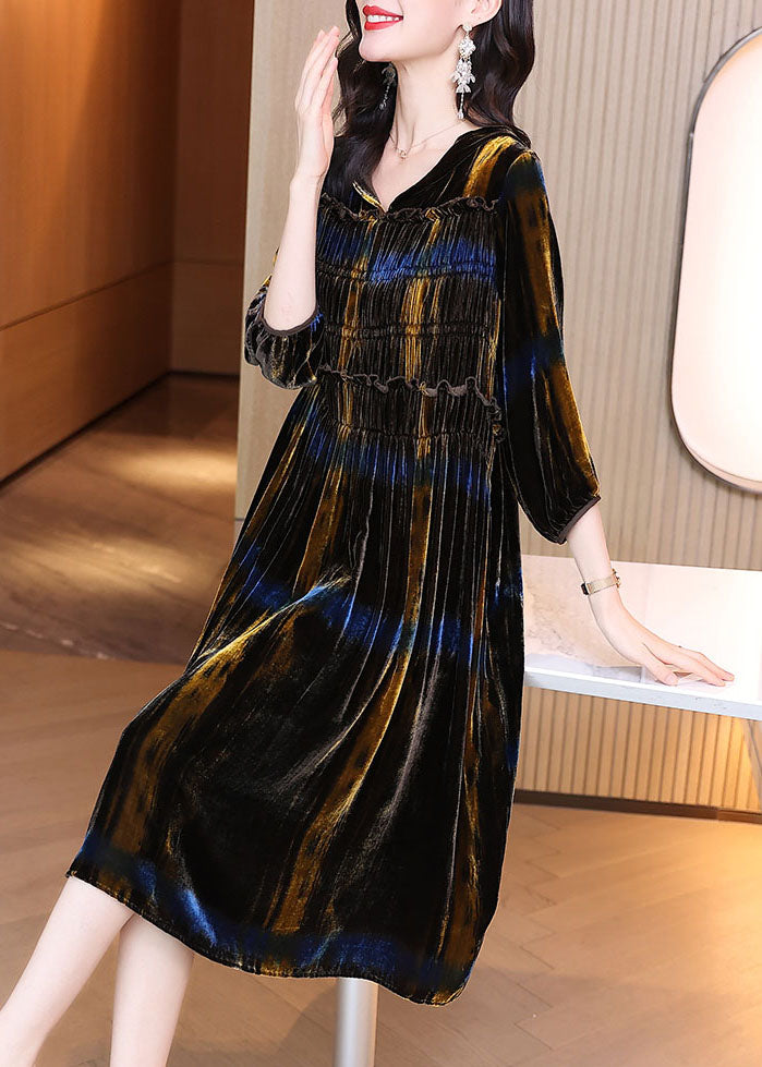 Frauen Farbverlauf faltig Velours Urlaub Kleid Winter