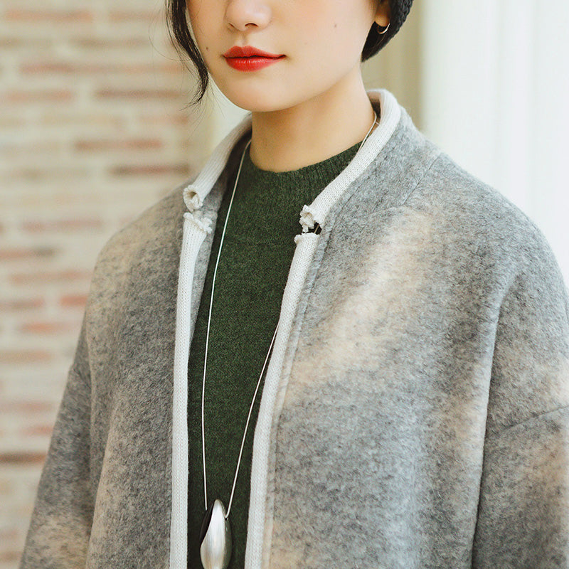 Frauen grau mäntel plus größe patchwork Wollmantel Mode langarm mantel