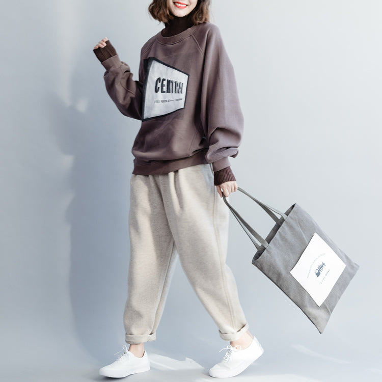 Frauen grau baumwolle kleidung Für Frauen Stoffe baggy o neck Brief top