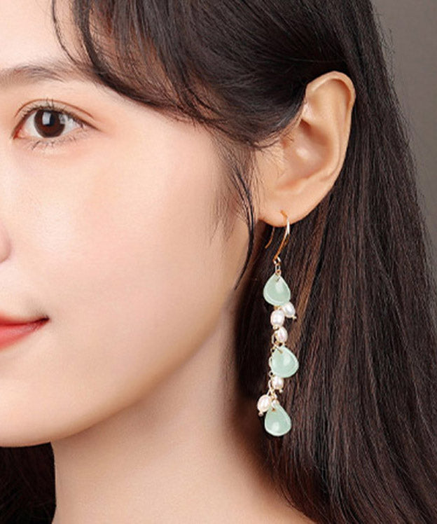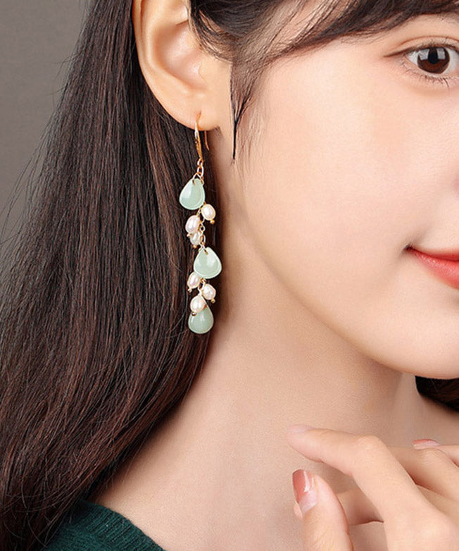 Women Green Copper Pearl Coloured Glaze Drop Earrings