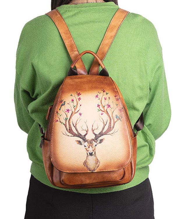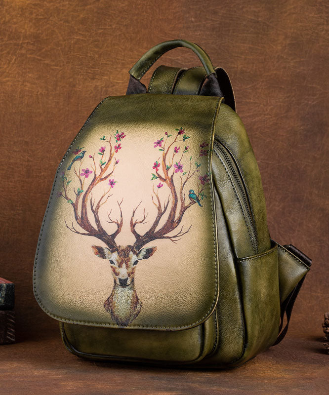 Damen Rucksack aus Kalbsleder mit grünem Aufdruck