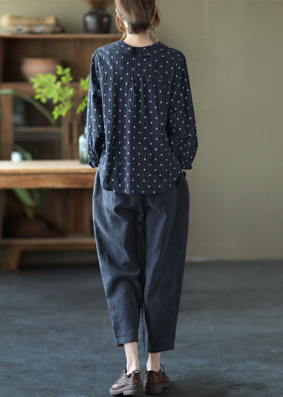 Frauen Grau Taste Rüschen Dot Herbst Hemd Tops Langarm