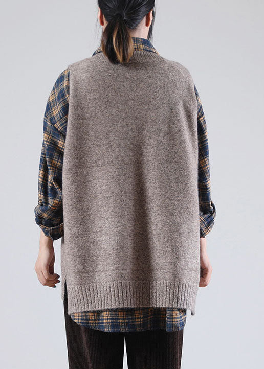 Damen Khaki V-Ausschnitt seitlich offen Ärmellose Strickweste