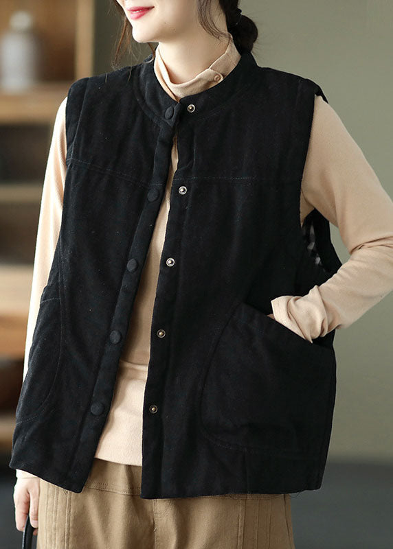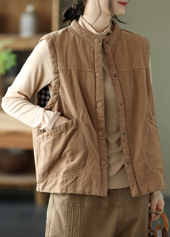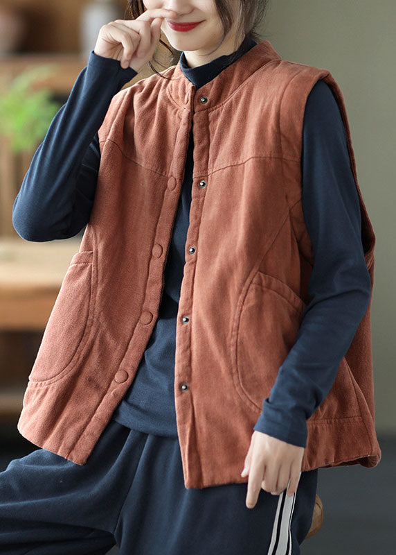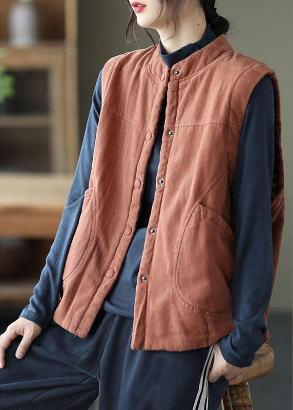 Damen Orange Stehkragen Knopftaschen Winter Ärmellose Weste