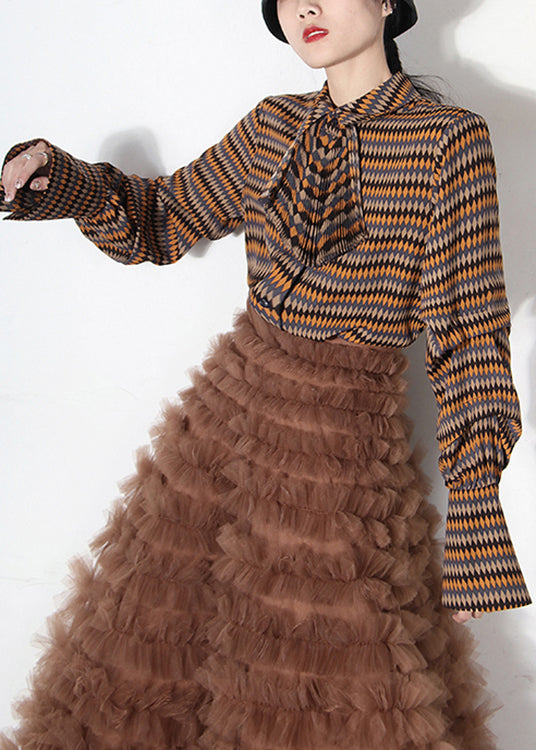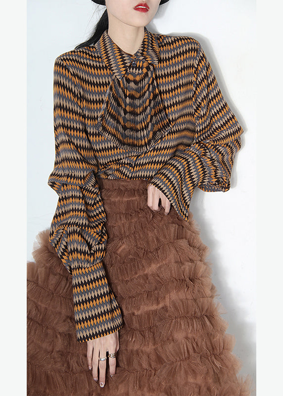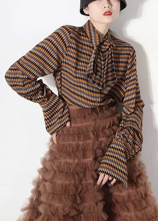 Frauen Peter Pan Kragen Plaid Button Seide Shirts Frühling