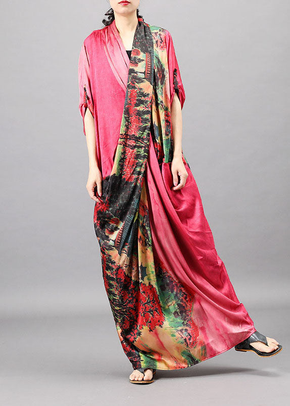 Frauen Rosa Taschen Print Patchwork Herbst Halbarm Kleid