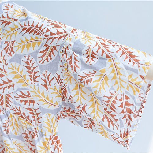 Dieses Kleid ist aus weichem und atmungsaktivem Baumwoll- oder Leinenstoff gefertigt.