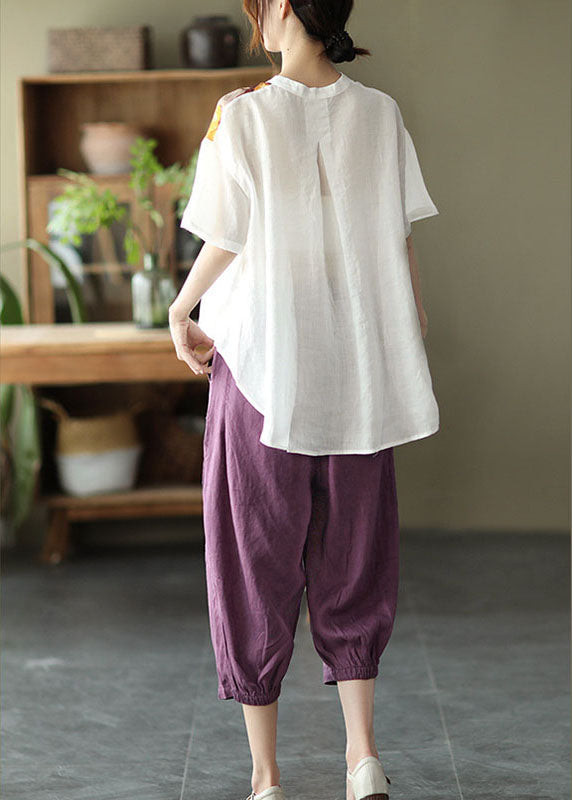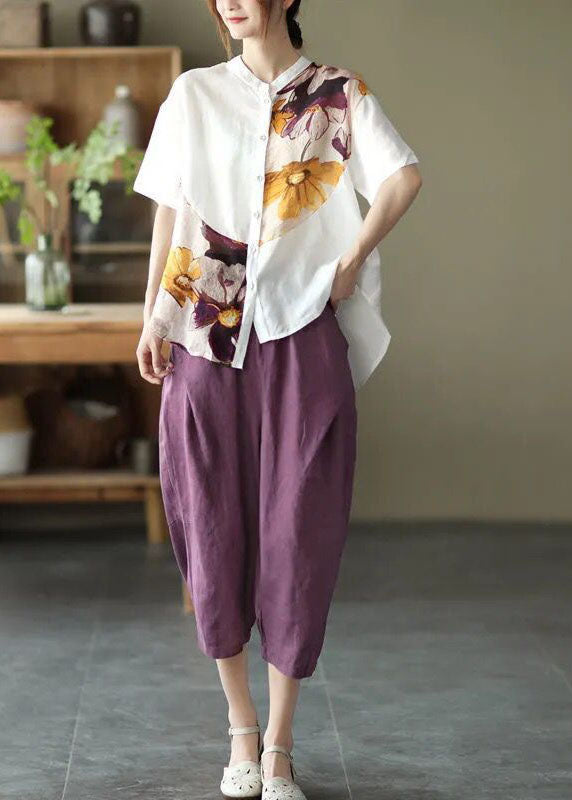 Frauen Weiß asymmetrische design Print Lose Herbst Hemd Halbe