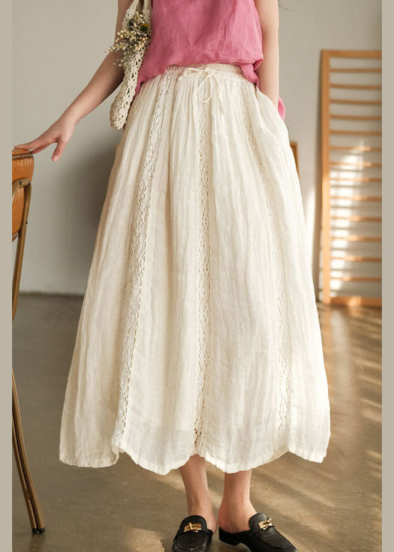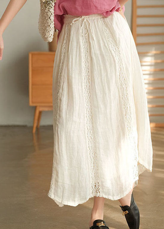 Frauen Weiß krawatte taille spitze Patchwork Leinen Röcke