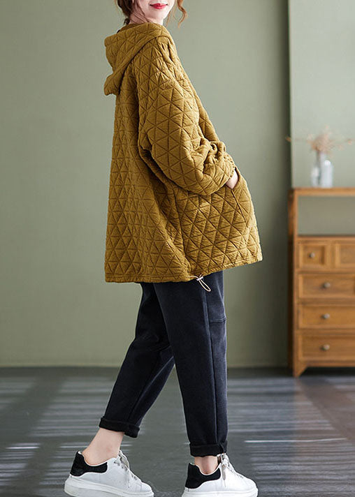 Gelbes warmes Baumwoll-Sweatshirt mit Kordelzug für den Winter